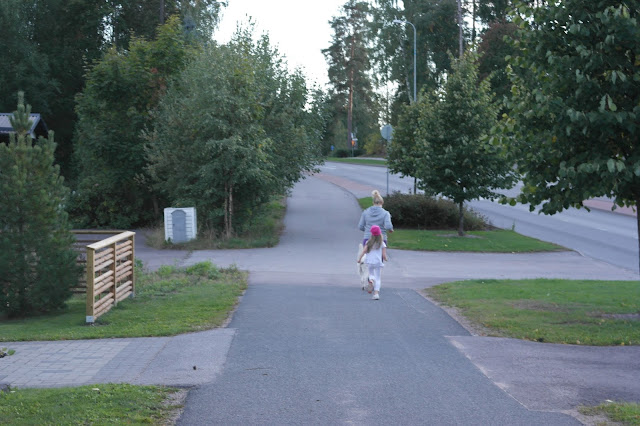 Keskiviikkona käytiin aamusta Susan ja Hirmun kanssa lenkillä ja koirapuistossa. Halusin vielä illalla lähteä uudestaan kunnon lenkille ja taas mentiin koko perheen voimin. Bella sanoi jaksavansa ja jaksoikin puoleen väliin lenkkiä oikein hyvin mutta alkuspurttien jälkeen ei kävely enää ollutkaan kivaa, sai neitokasta tsempata kunnolla että neiti jaksoi kävellä kotiin asti.
