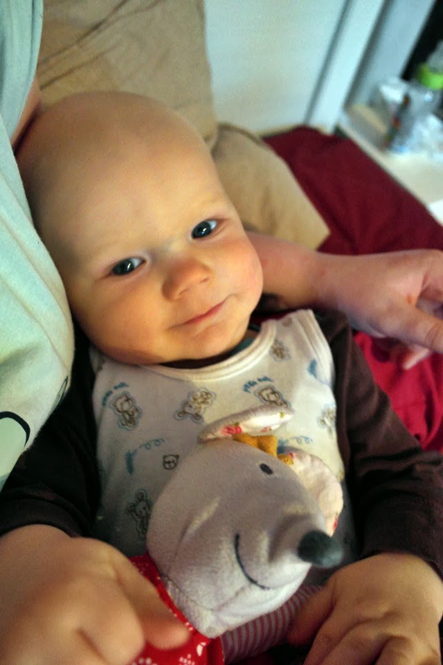 Kipeänä jaksoi silti hymyillä vähäsen äidin sylissä
