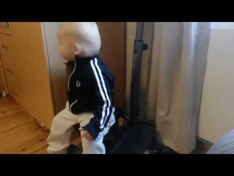 Bellan juhliessa voikkakaverin luona, piipahdettiin me Äidin luona. Joacimilla oli taas vauhti päällä ja juoksenteli ympäriinsä, kun löytyi tilaa huomattavasti enemmän kuin kotoota. Pitkästä aikaa Joacim löysi stepperin ja halusi kovasti jumppailla sillä, mutta oma paino ei ihan riittänyt oikeaoppiseen jumppaamiseen. Kuitenkaan Joacim ei halunnut luovuttaa ihan helpolla, joten hän keksi oman tyylin jumppailla stepperillä.